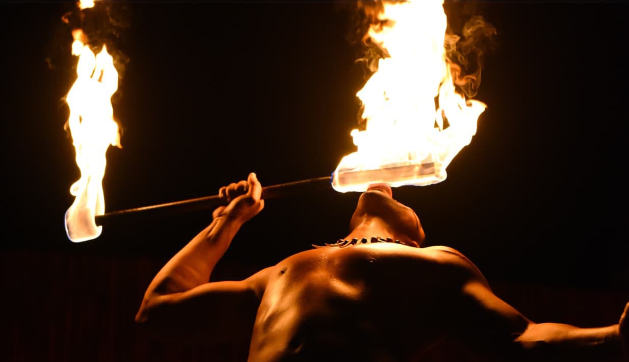 Celebrate Hawaii’s spirited culture, with the entire family, at our enchanting oceanfront Maui Luau with awe-inspiring sunsets. Embrace the traditions of our island in a stunning oceanfront setting on Ka’anapli Beach as you experience a shell lei aloha greeting. Witness the Imu ceremony and the unearthing of the pua’a (pig) followed by a feast of roasted pork and sumptuous Hawaiian cuisine. Sip mai tais and exotic cocktails made with local rum and topped with a pineapple wedge. Watch hypnotizing hula dances and feel the beat of the rhythmic drums of Polynesia. See swirling flames in the air by the fire knife dancers. Surrender to the island’s magic where Hawaiian and Polynesian culture create a spectacular show. The music, the colors, the ocean, the energy will excite your senses.